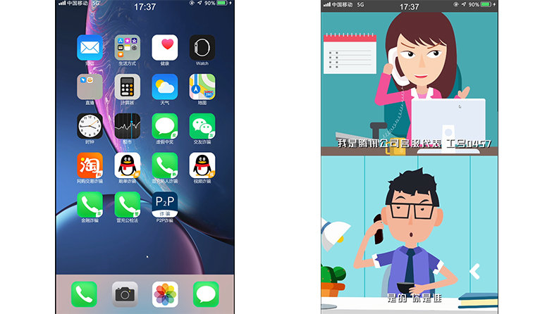 本系統(tǒng)運(yùn)用了虛擬仿真技術(shù),模擬手機(jī)操作系統(tǒng),將9大常見詐騙案例,通過(guò)手機(jī)應(yīng)用圖標(biāo)的方式,展示 給體驗(yàn)者,并能觸發(fā)對(duì)應(yīng)的案例。案例包含:冒充管理人員、冒充熟人詐騙、虛假中獎(jiǎng)、交友詐騙、刷單詐騙、QQ視頻詐騙、網(wǎng)上交易詐騙、金融詐騙、P2P 詐騙案例;體驗(yàn)者在體驗(yàn)案例的過(guò)程中,將遇到一些重要的選擇,并將引導(dǎo)你進(jìn)入之后的情節(jié),最后將有虛擬民警,講解防范此類詐騙的技巧和要點(diǎn)。