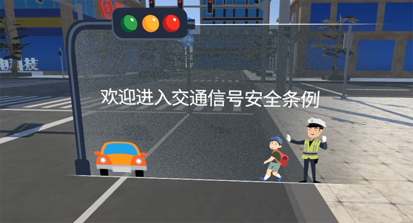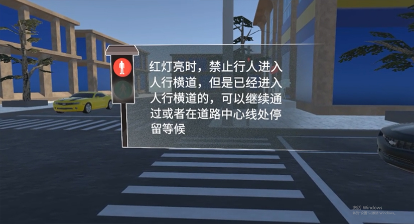 體驗(yàn)者需通過(guò)手柄選擇與文字相對(duì)應(yīng)的交通標(biāo)志圖案,最后有得分展示。體驗(yàn)者通過(guò)VR虛擬場(chǎng)景,模擬教學(xué)知識(shí)點(diǎn),使學(xué)習(xí)者通過(guò)游 戲銘記每個(gè)交通標(biāo)志代表的含義。
