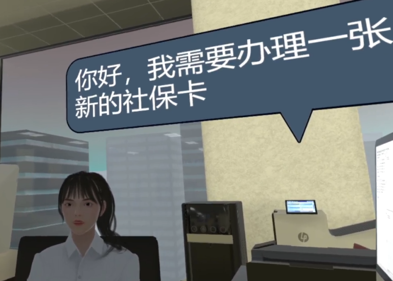 模擬到派出所現(xiàn)場相應(yīng)窗口辦理社保,體驗(yàn)者以第一視角攜帶相關(guān)證明到派出所完成社??ㄞk理。