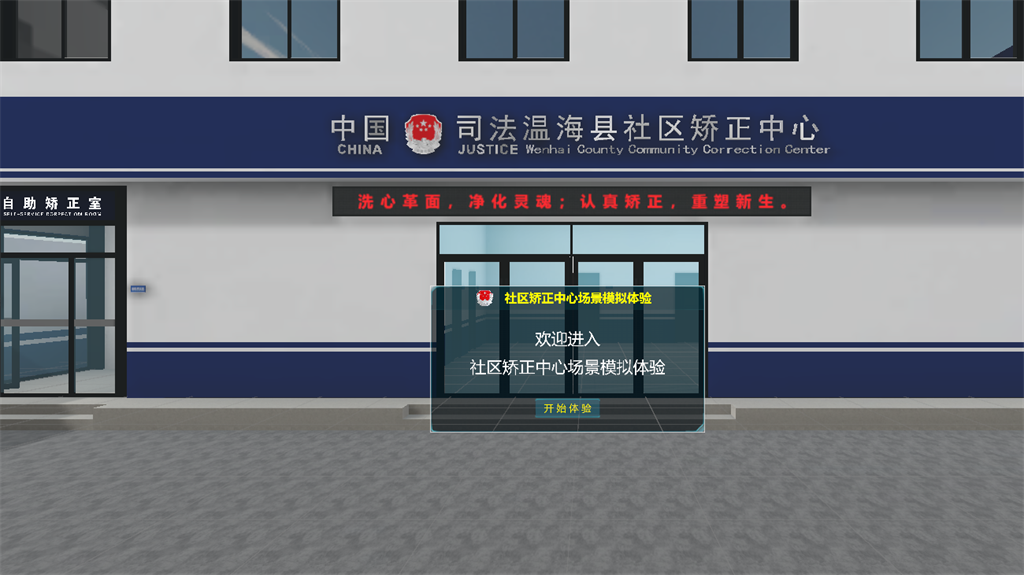 場景精確復(fù)現(xiàn)社區(qū)矯正中心的“三區(qū)十八室”,體驗(yàn)者仿佛置身其中,可自由漫游和互動(dòng)。系統(tǒng)還配備語音介紹每個(gè)科室,助力體驗(yàn)者更深入地認(rèn)識(shí)和了解社區(qū)矯正中心。