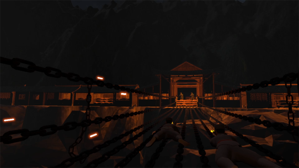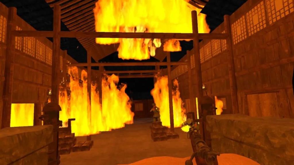 在VR飛奪瀘定橋體驗系統(tǒng)2.0中,體驗者載上VR眼鏡,穿越到1935年5月29日的那天夜晚,眼前便是瀘定橋,橋面腳下是鎖鏈森森,江水濤濤,稍有不慎就會遇險落水。環(huán)顧四周,戰(zhàn)友們在槍林彈雨中努力前進(jìn)。拿起手彈,用力一擲,手榴彈便在敵方陣中應(yīng)聲爆炸,熱血澎湃的你恨不得射光所有的子彈,將敵人全部消滅,但是夜色昏暗,橋面不穩(wěn),沒有遮擋,你和戰(zhàn)友們只能抓緊鎖鏈,躲避子彈,緩慢前進(jìn)。