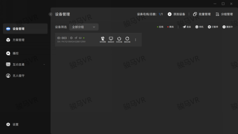 2、中控設(shè)備狀態(tài)顯示及異常報(bào)警:中控系統(tǒng)能夠?qū)崟r顯示每一臺VR頭顯是否連接正常、設(shè)備號等信息,可以管理客戶端設(shè)備。