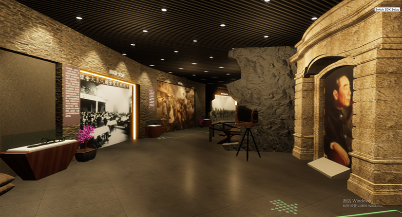 在虛擬黨史館里里將會(huì)有人工智能AI講解員帶領(lǐng)大家參觀學(xué)習(xí),走到不同區(qū)域會(huì)自動(dòng)響起不同的講解詞,解決傳統(tǒng)展館無(wú)人講解的難點(diǎn)。走到特殊幾個(gè)歷史事件觸發(fā)程序,展館墻壁弧形大屏上會(huì)呈現(xiàn)該歷史事件的紅色影片。