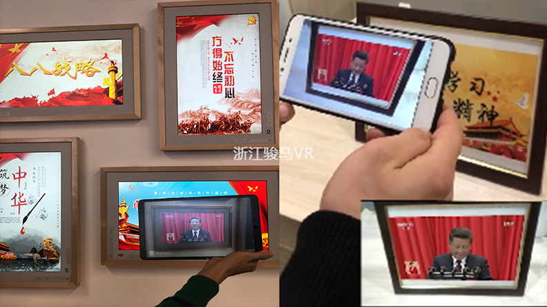 將紅色電影、黨史故事等以AR電子相框方式展示,通過平板或者安卓手機掃描圖片,讓靜態(tài)內容動起來,讓平面內容立起來,增強黨員學習教育生動性和趣味性。