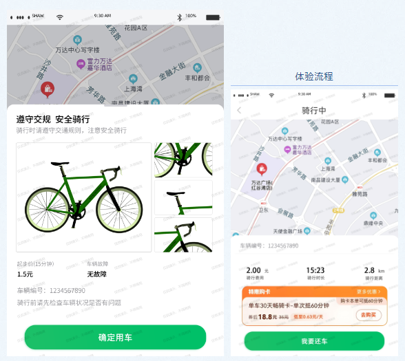 真實(shí)還原生活中的共享單車。通過平板電腦上的單機(jī)版共享單車APP,掃碼開鎖,開鎖配有語音提示和教學(xué)教程;還車時,一鍵點(diǎn)擊關(guān)閉車鎖,系統(tǒng)便會提示“還車成功”。整個軟件采用藍(lán)牙技術(shù)開鎖關(guān)鎖,確保信息安全。